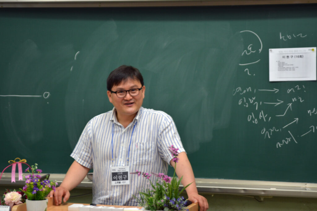 모교에서 일일교사로 수업하고 있는 이현구 대표의 모습이다